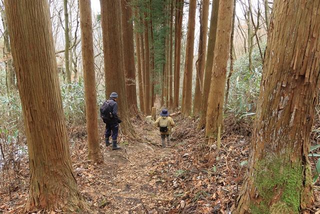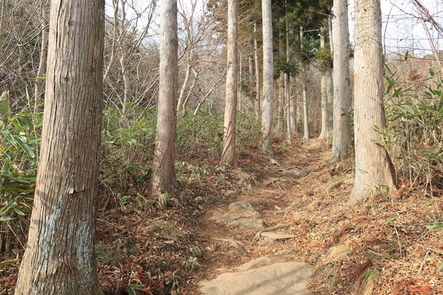 杉に囲まれた参道を進むと、ほどなくして急登となります。