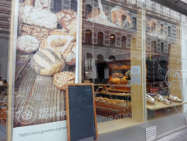 Waldherrは、25年の歴史あるベーカリー。オーストリア東部アイゼンシュタット出身のオーナーが、ウィーンのベーカリーで修業したあと、1956年に故郷にオープンしたお店です。現在はウィーンに2店舗、グラーツに1店舗支店があり、今回訪れたのはウィーン1区のベーカリー。「BIO」の大きな文字通り、材料はすべてオーガニック。そして何といっても売りは材料の全粒粉です。