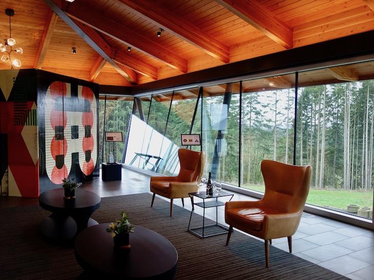 テイスティングルーム内は美しく、とても快適で、大きな窓からウィラメットバレーを見渡すことができます。