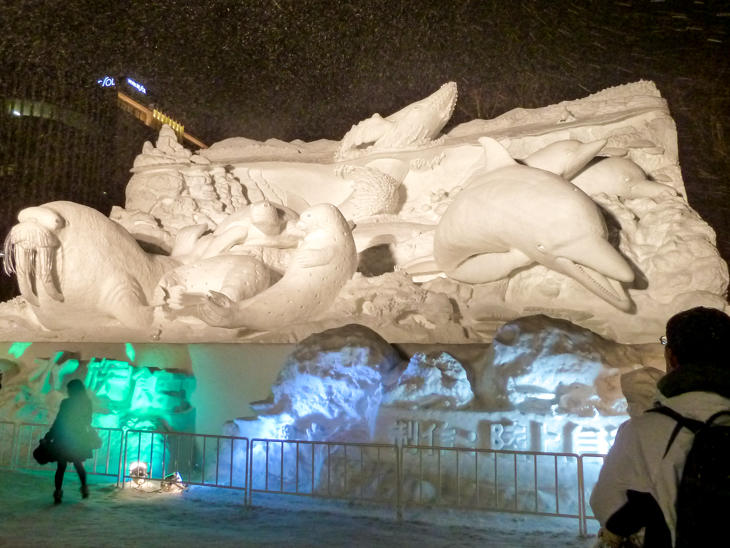 生き生きとした大雪像と、しんしんと降りしきる雪が印象的です。