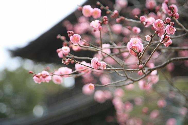 こちらは、本堂手前にある湯豆腐処「竹仙」の梅。
