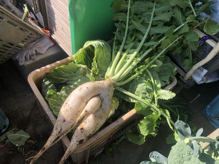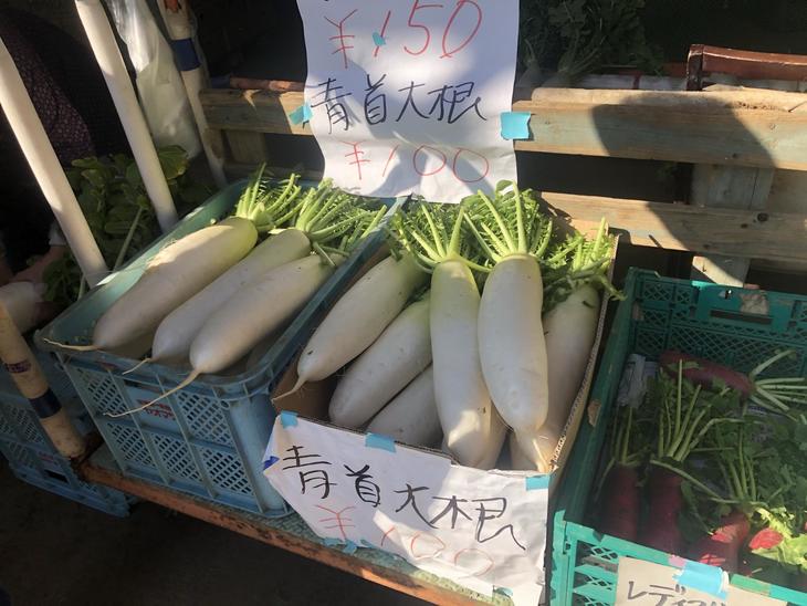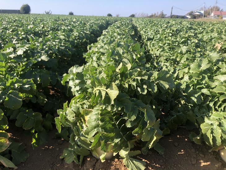 桜のトンネルを歩きながら付近を散策していると、大根畑に遭遇しました。