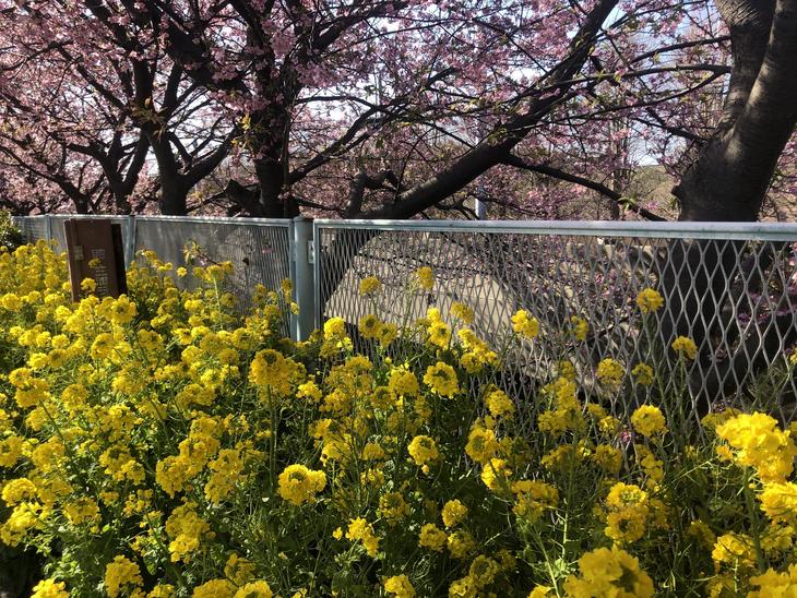 桜の木の下には鮮やかな黄色の菜の花も満開。