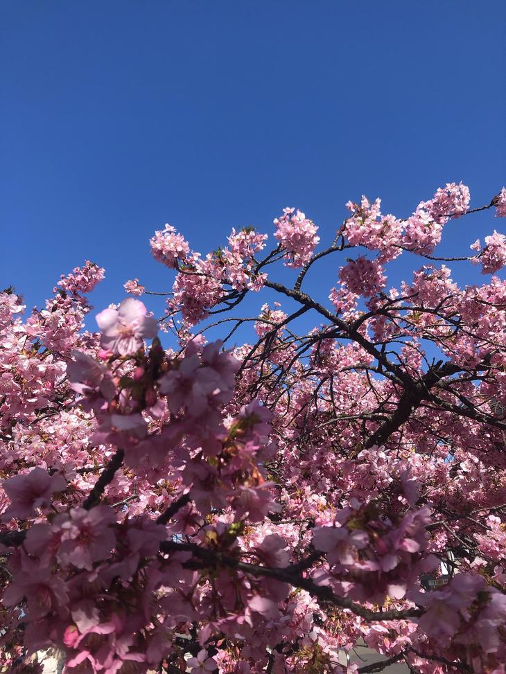 駅を降りるとすぐに満開の河津桜がお出迎え。