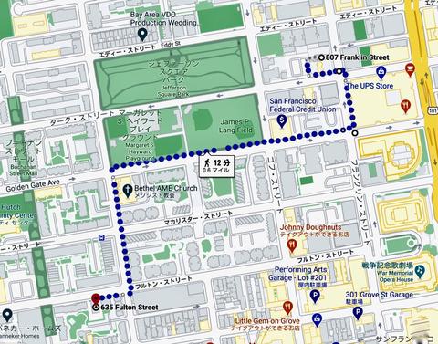 ベニア板で覆われている807 Franklin STです。ちなみにフランクリン通りから西側には今でもビクトリアンハウスが残っているエリアです。今は催行されていませんが、"ビクトリアンハウスを見て回るツアー"は、この辺りを巡ります。1906年のサンフランシスコ大地震で、町中が大火事になり木造のビクトリアンハウスが沢山焼けてしまいましたが、バンネス通りから西側は幸い火災になっていないのでこうして残っているのです。