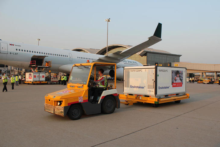 香港国際空港に届いたワクチン(写真提供:キャセイパシフィック航空)