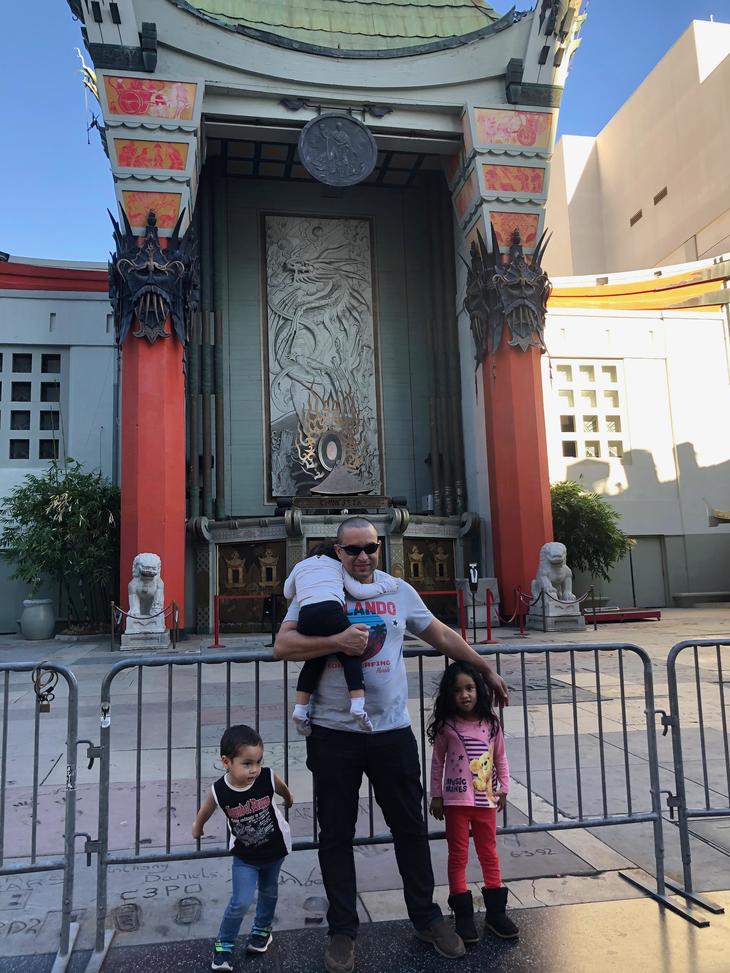 まずはハリウッドのチャイニーズシアター。スターの手形や足型が地面に埋め込まれていて有名です。通常は常に観光客でにぎわっていて私も何度も訪れたことがありますが、このときはまだ閉ざされていて中庭に入ることはできませんでした。