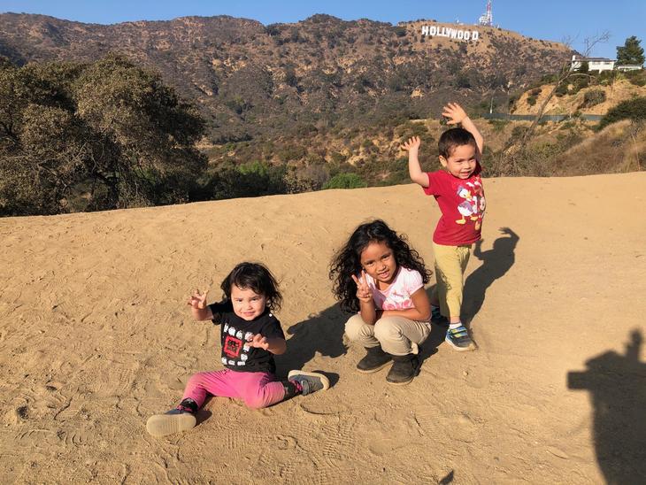 ハリウッドサインがきれいに見えるポイントでお弁当を食べ写真を撮りました。