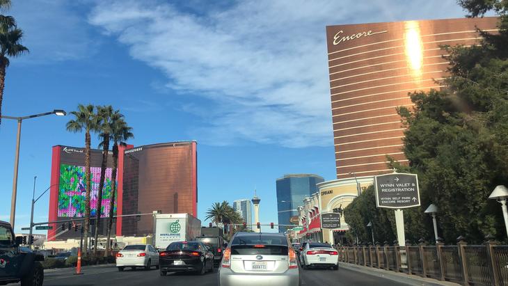 ラスベガスに近付いてくるときらびやかな景色にウキウキします。