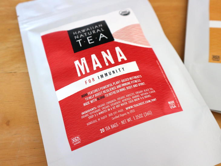 2020年に全世界を襲ったコロナ禍は、世界中の人びとの生活を変えてしまいました。ハワイでも、いままでなかったマスク着用や社会的距離の確保などが日常となり、免疫力を高めたいといった健康への意識が高まってきました。ハワイの紅茶の老舗「ティーチェスト・ハワイ」では、ハワイ産ママキやモリンガといったスーパーフードを使った「マナ」と「オレナ」を開発しました。どちらも手軽なティーバッグ商品です。