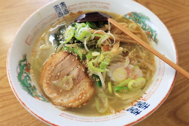 野菜の旨味が溶け込んだ塩系スープにゴマとチャーシューの香ばしさが漂います。