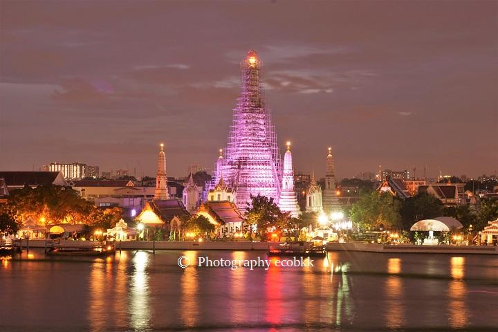 △チャオプラヤー川と寺院「ワット・アルン」の風景