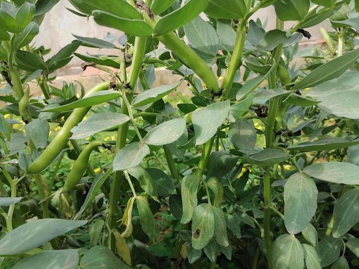 これはソラマメです。ソラマメは枝葉の様に最初上向きに育ちます。