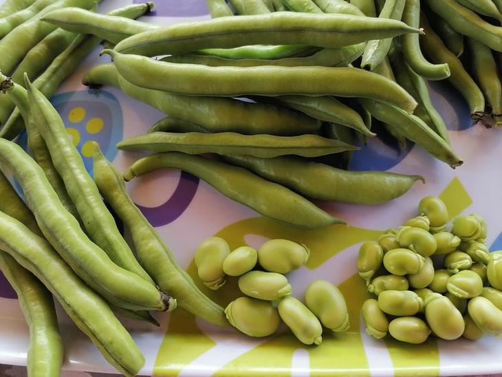 スペインでは日本の食卓に上がる様な大きなソラマメもいただきますが、まだ若いソラマメもさやごといただきます。輪切りにしオムレツにしたりパエリアに入れたり。若いソラマメの粒だけ取り出しベイビーソラマメという名前で売られています。ベイビーソラマメはさいの目切りにした生ハムと一緒に炒めたりします。