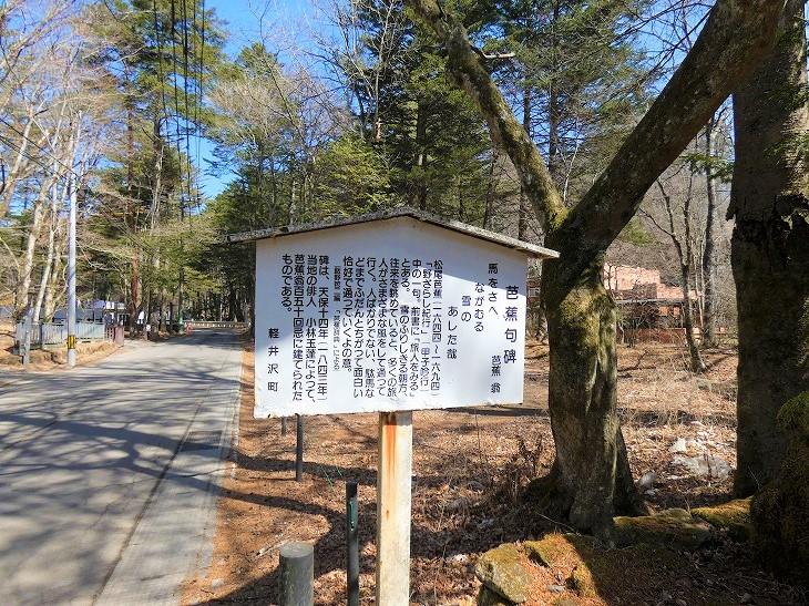 軽井沢駅方面から旧軽井沢銀座を過ぎてすぐの場所に芭蕉句碑があります