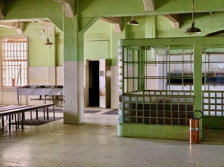 そして、ツアーの最後はやはりダイニングとキッチンです。アルカトラズ島刑務所は食事の美味しい刑務所として有名でした。これは、初代所長の"良い食事は良い行いをうむ"理念から、感謝祭にはターキーも出ていたのは、オーディオツアーには紹介されてませんけど、ここで栄養を考え美味しいご飯を作っていたのです。明るくて素敵なキッチン^ ^