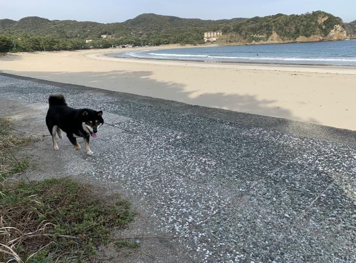 写真は私の愛犬「黒柴」のリキです。弓ヶ浜がお散歩コースです。