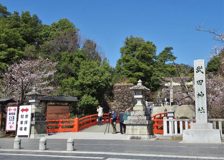 武田神社から甲府駅までの武田通り沿いには、約2kmの桜並木が続き、散歩がてら歩くのもおすすめです。