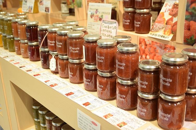 こんにちは。大阪特派員のかおりです。皆さんは食パンに何を塗りますか?バター? ジャム?筆者は圧力鍋でジャムを作ったのをきっかけにジャムのおいしさに目覚め、もっぱらジャム派です。今回は大阪市淀屋橋にあるジャムのお店、メルカートピッコロの紹介です。こちらはALL国産原料を使ったジャムのお店です。使用する果物だけでなく、砂糖も北海道産の甜菜糖です。種類が豊富で迷うこと必至です。ジャムだけでなく、シロップやジュースもあります。ギフトにもぴったり。