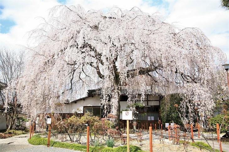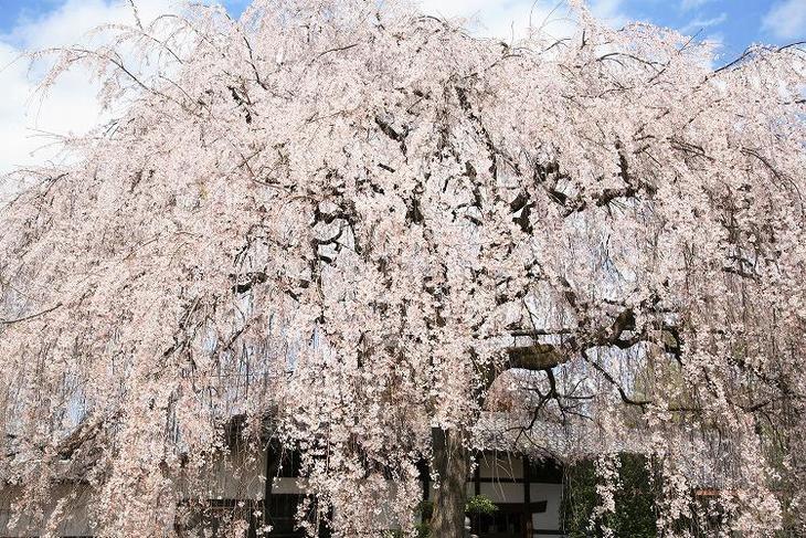 境内では「この桜の前で言葉はいらない」と例えられる一本桜が見頃を迎えています。