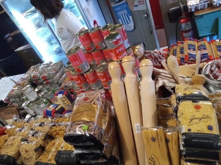 店内はまるで雑貨屋のよう、イタリア食材満載です。シェフのおすすめや持ち帰りパスタなどを売っています。