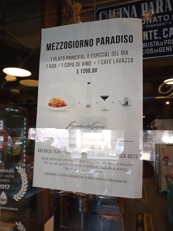 メインとワイン、お水、コーヒーのランチセットが1200ペソでした。プラス、デザートですね。