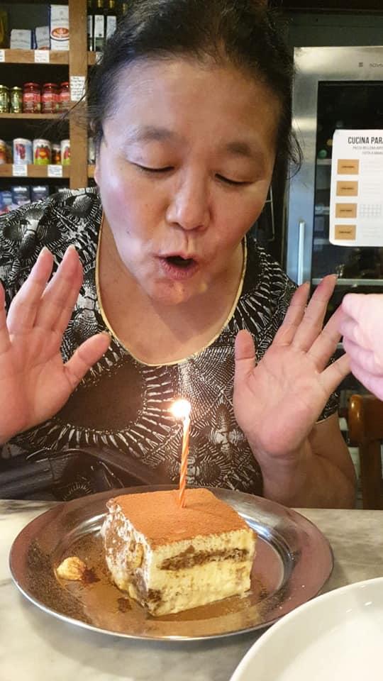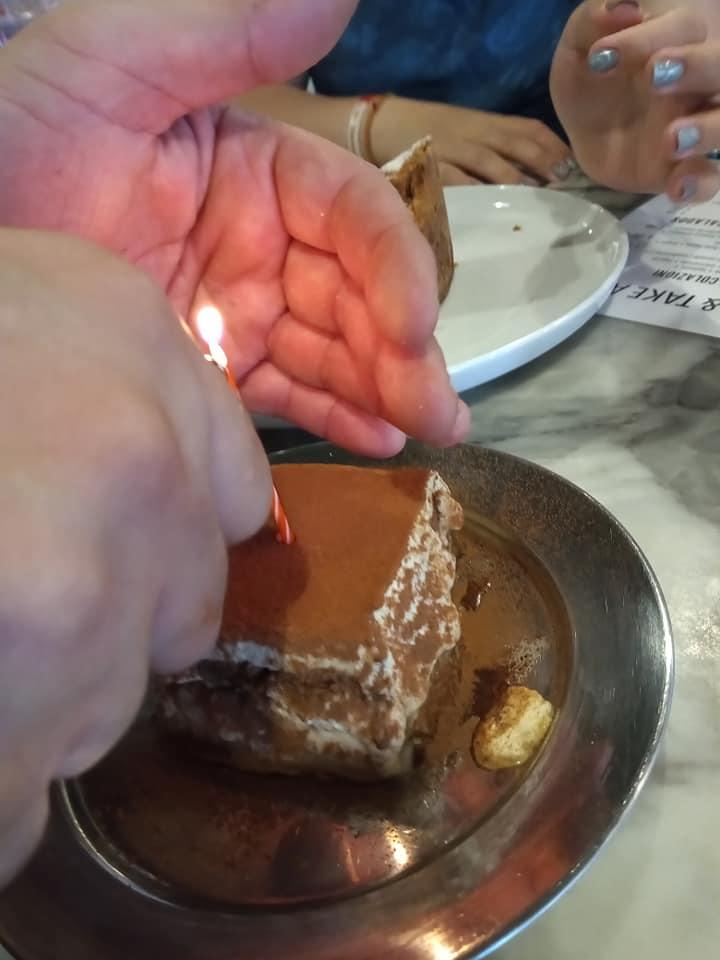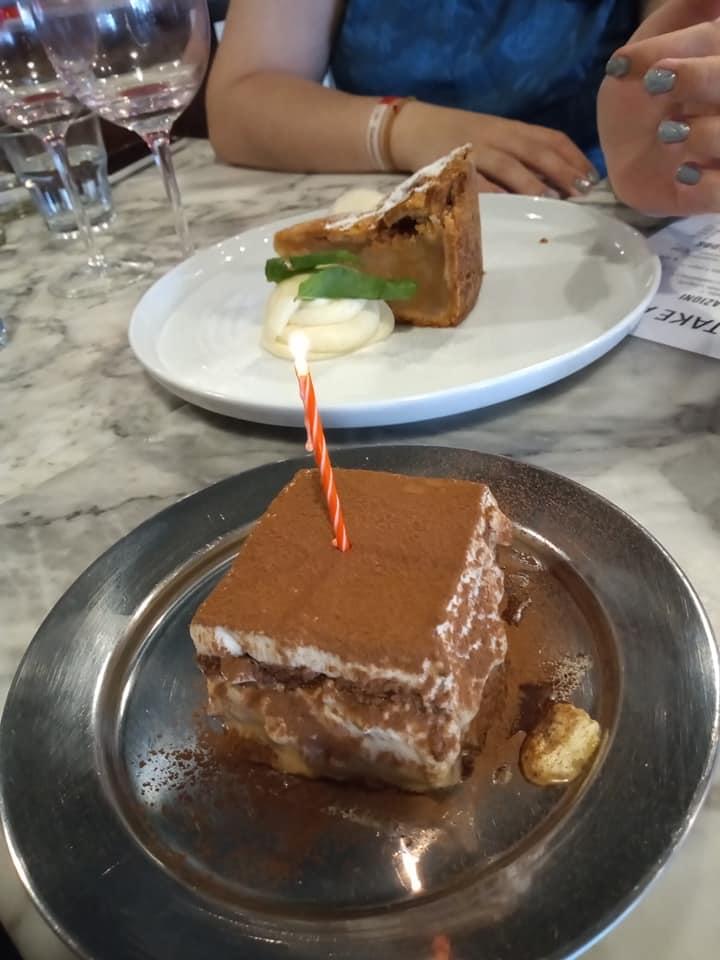 デザートをふたつ頼んでシェアしようとしたらティラミスにろうそくをつけてくれて、イタリア語で歌ってくださいました。