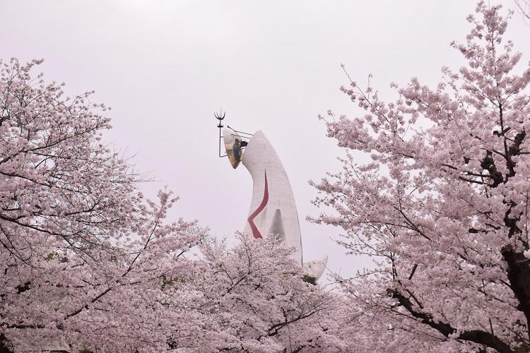 パンフレットにも使われているアングルで撮ってみました。太陽の塔と東大路の桜を一緒に入れると、万博記念公園らしい桜が撮れます。