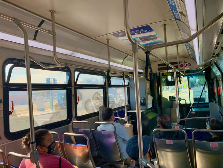 せっかくなので、公共交通機関のバスにも乗ってみました。FAX(Fresno Area Express/フレズノエリアエクスプレス)。滞在先からダウンタウンまで、#22(ルート)です。だいたい20~25分に1本の割合とのことでした。現在コロナで運賃無料となっています。