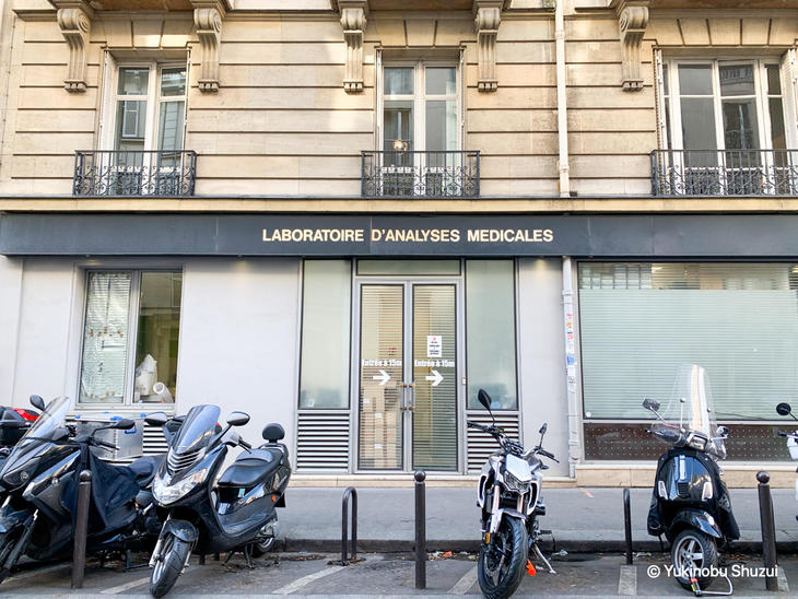 予約の有無や予約の取り方は、ラボにより異なります。検査料はフランスの健康保険証を所持している場合は無料です。ラボの検査結果はフランス語のみであったり、厚生労働省の求める「検査証明書へ記載すべき内容」がすべて記載されていない場合があります。このような場合は、ラボ発行の証明をもって所定のフォーマットに転記できないか、主治医などに相談が必要です。