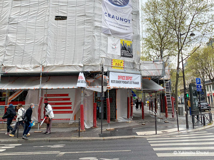 ▲パリ市内Office DEPOT、外観は工事中ですが開いています