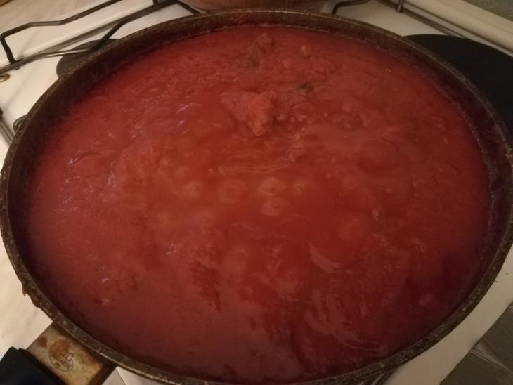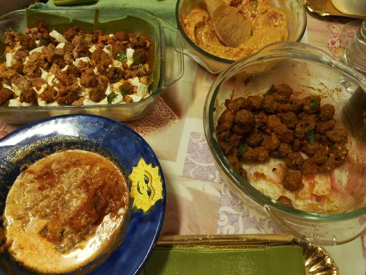 こちらがラザニア用のトマトソース(ボロニェーゼ風にしたかったのですが、夫の希望でナポリ風のラグーソースにしました)