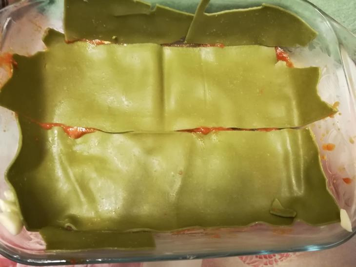 ラザニアのグリーンパスタ(ほうれん草入りのラザニア用手打ちパスタ)!