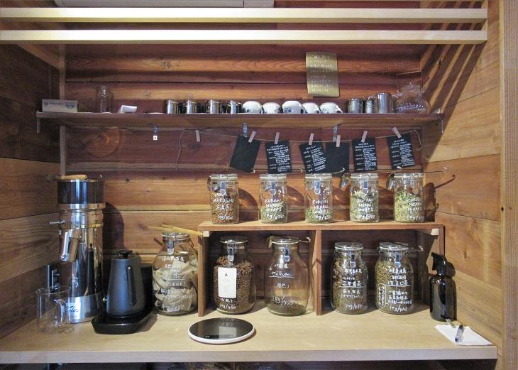 コーヒーやハーブティのコーナーもあり、購入したものを淹れてもらってテラスで味わうこともできます。
