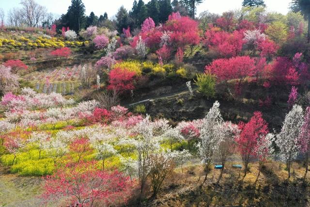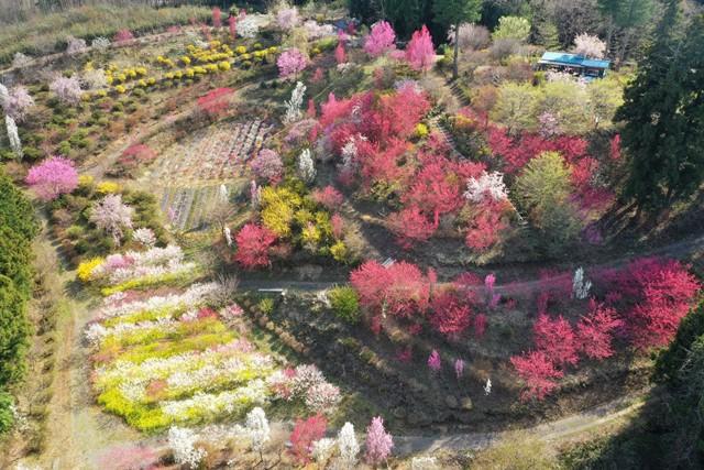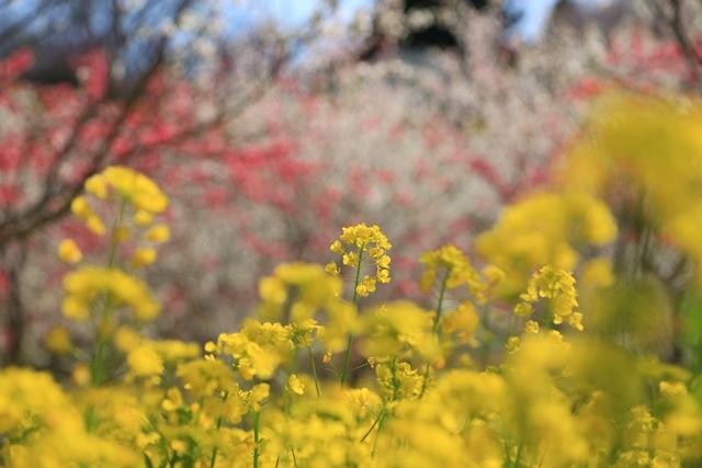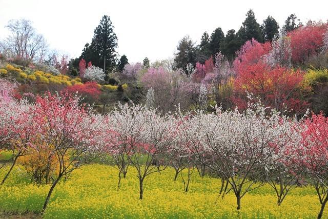 目下、見頃の最盛期は、ハナモモやレンギョウ、菜の花などです。