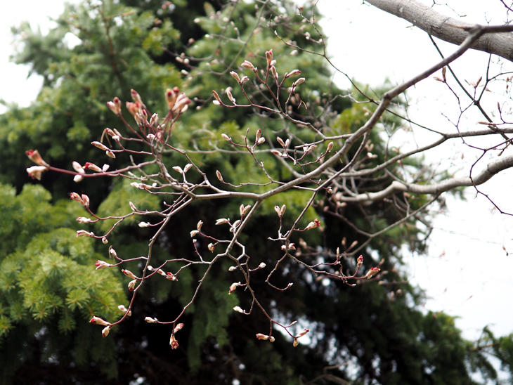 公園内には、エゾヤマザクラもあり、ピンク色の蕾が枝いっぱいについていました。