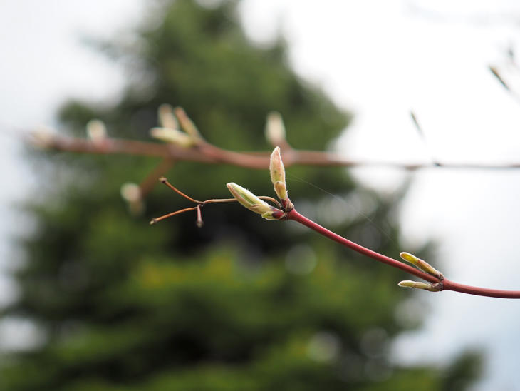 桜の蕾にばかり目が行っていましたが、周りの木の葉も花の蕾のように色づいていました。