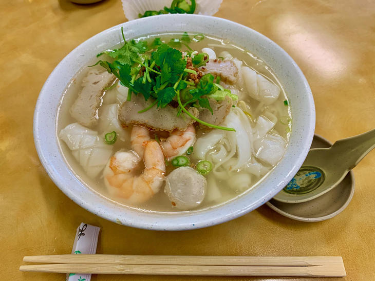 シーフードの幅広ライスヌードル($12)