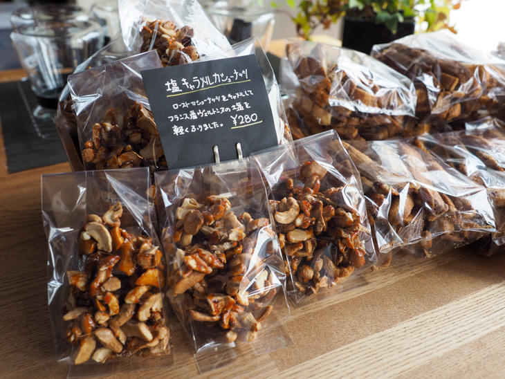 ローストカシューナッツも販売しているのですが、こちらはそれをキャラメリゼ。さらにフランス産ヴェルトンヌの塩がふられているのが味の決め手。