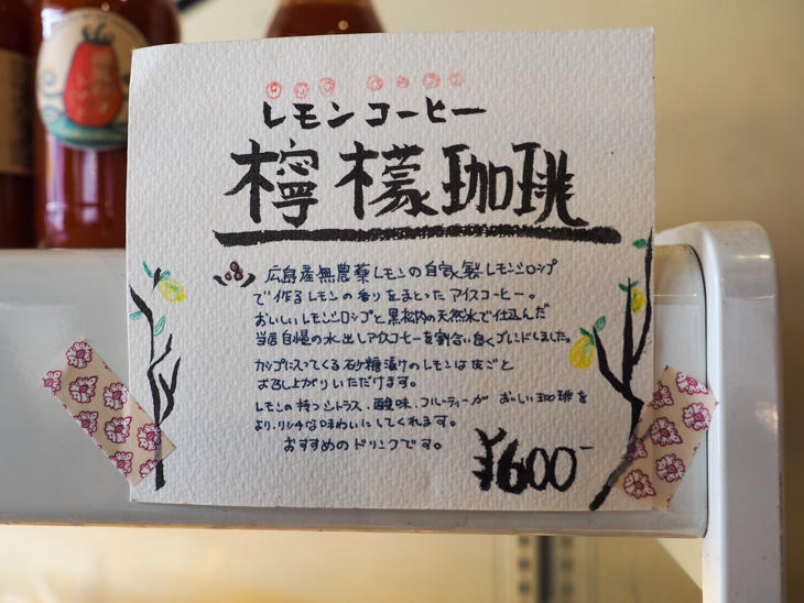 広島県産の無農薬レモンで作った自家製レモンシロップと黒松内の水で水出ししたアイスコーヒーをブレンドしているそうで、コーヒーの風味と爽やかなレモンを同時に味わえるドリンク。