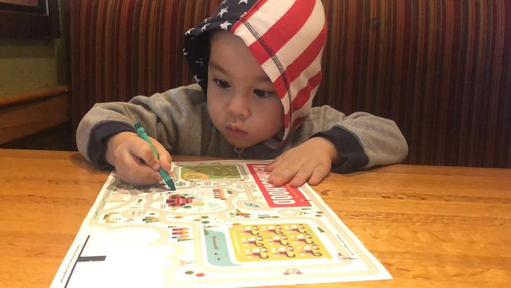 子供にはクレパスとメニューも書かれている塗り絵などをサービスしてくれます。