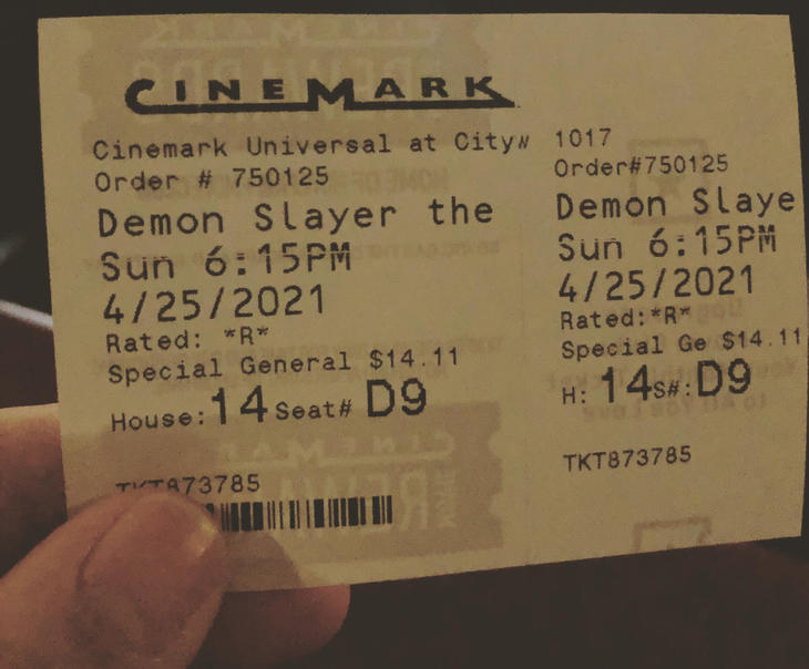 昨年末に日本で話題になっていた鬼滅の刃の劇場版をアメリカで観てきました!
