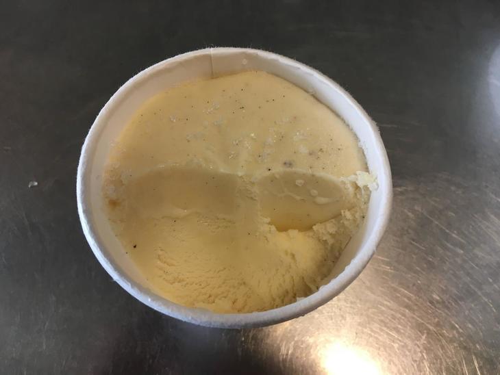 味はバニラががっつりきて、しつこくない甘さです。濃厚ながら、蜂蜜を使用しているためか、水分量を多く感じ、さっぱりしています。とても食べやすく、夏にぴったりのバニラアイスクリームです。