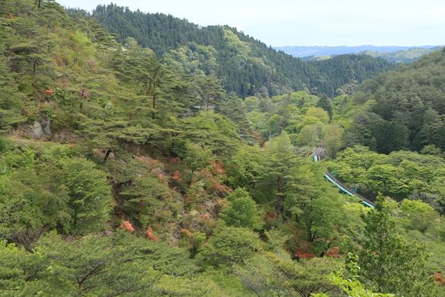 天3(展望岩)より、矢祭山駅周辺を俯瞰します。