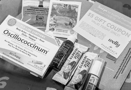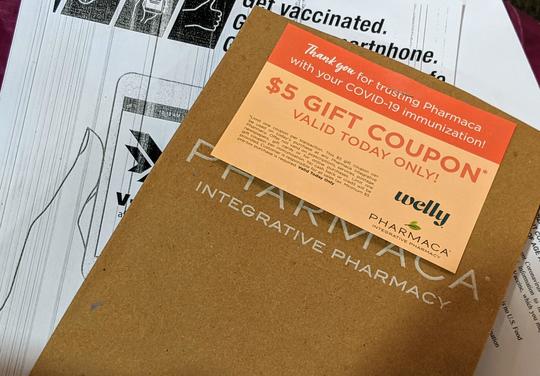 Thank you for trusting Pharmaca with your Covid-19 immunization!(コロナワクチンにファーマカを信頼してくれてありがとう!)と書かれているのを見ると、コロナワクチンに対して消極的な方もいる状況や、コロナワクチンの接種が集団免疫の一手段として、社会的に必要とされている背景を考えさせられます。