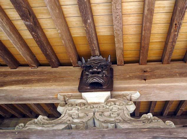 現在の社殿は明治40年に造営されたものですが、拝殿の軒下に神楽面のような面がありました。何を意味するのでしょうか。