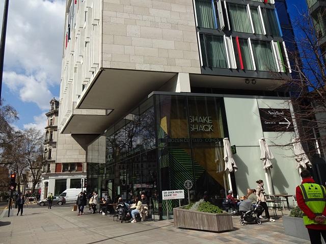 日本でも人気のハンバーガー「シェイクシャック」も、この通り。やや気温は低めながら、外で食事やドリンクを楽しむ人々の表情は、やはり解放感にひたって幸せそうに見えます♪