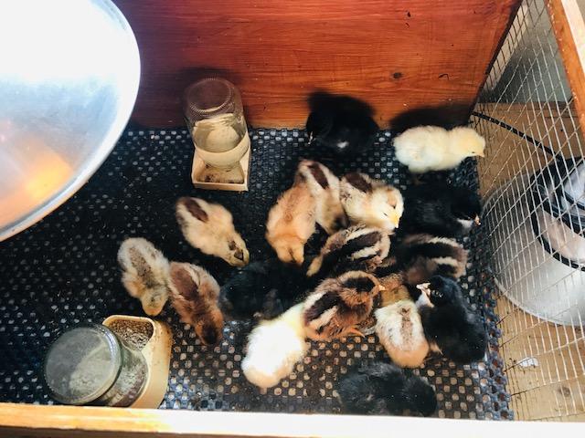 ▲ 誕生したばかりのチキンのヒヨコたち(4月3日撮影)
