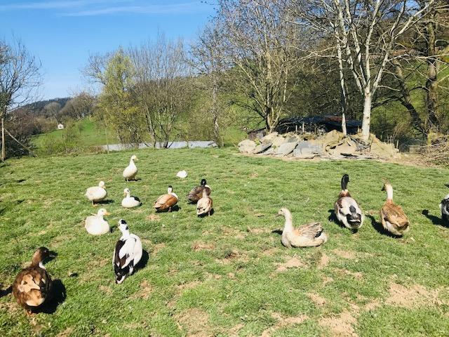 もちろん、それぞれ庭に専用の鳥小屋があり、その中で飼育してるのですが、ニワトリとアヒルは基本的に「フリーレンジ(Free-Range)」と呼ばれる放し飼いなので日中は庭を自由に歩きまわってます。