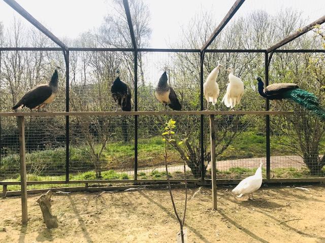 ▲ 大きなクジャク小屋には高さが異なるふたつのパーチ(止まり台)も設置。クジャクたちのお気に入りスポット